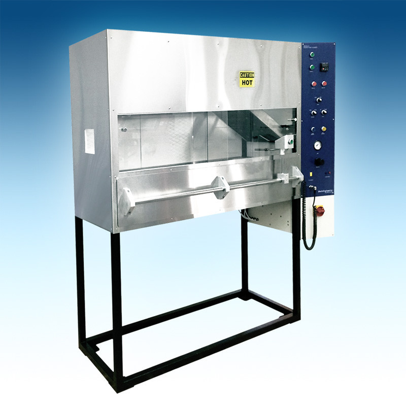 AC 25.856-1 Wärme- oder Schalldämmungs-Flammenverbreitungsprüfer, nach FAR Teil 25 Anlage F Teil VI, is designed to evaluate the flammability and flame propagation characteristics of thermal or acoustic insulation material used in an aircraft cabin when exposed to an electric radiant heat source and a defined flame source.